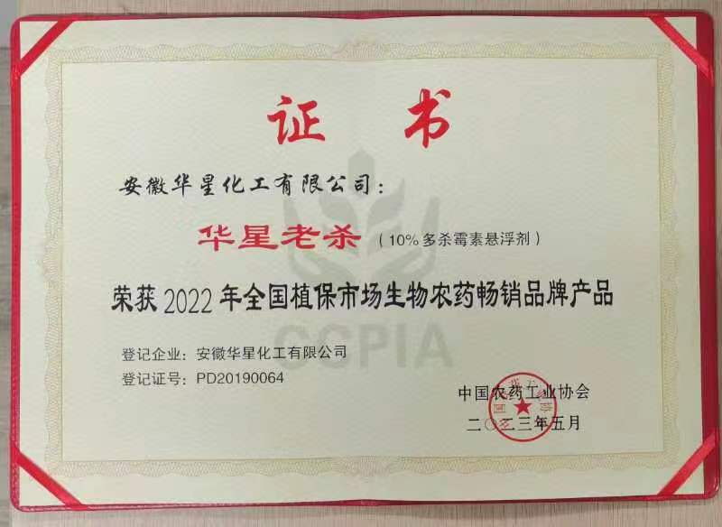 老杀荣获2022年全国植保市场生物农药畅销品牌产品