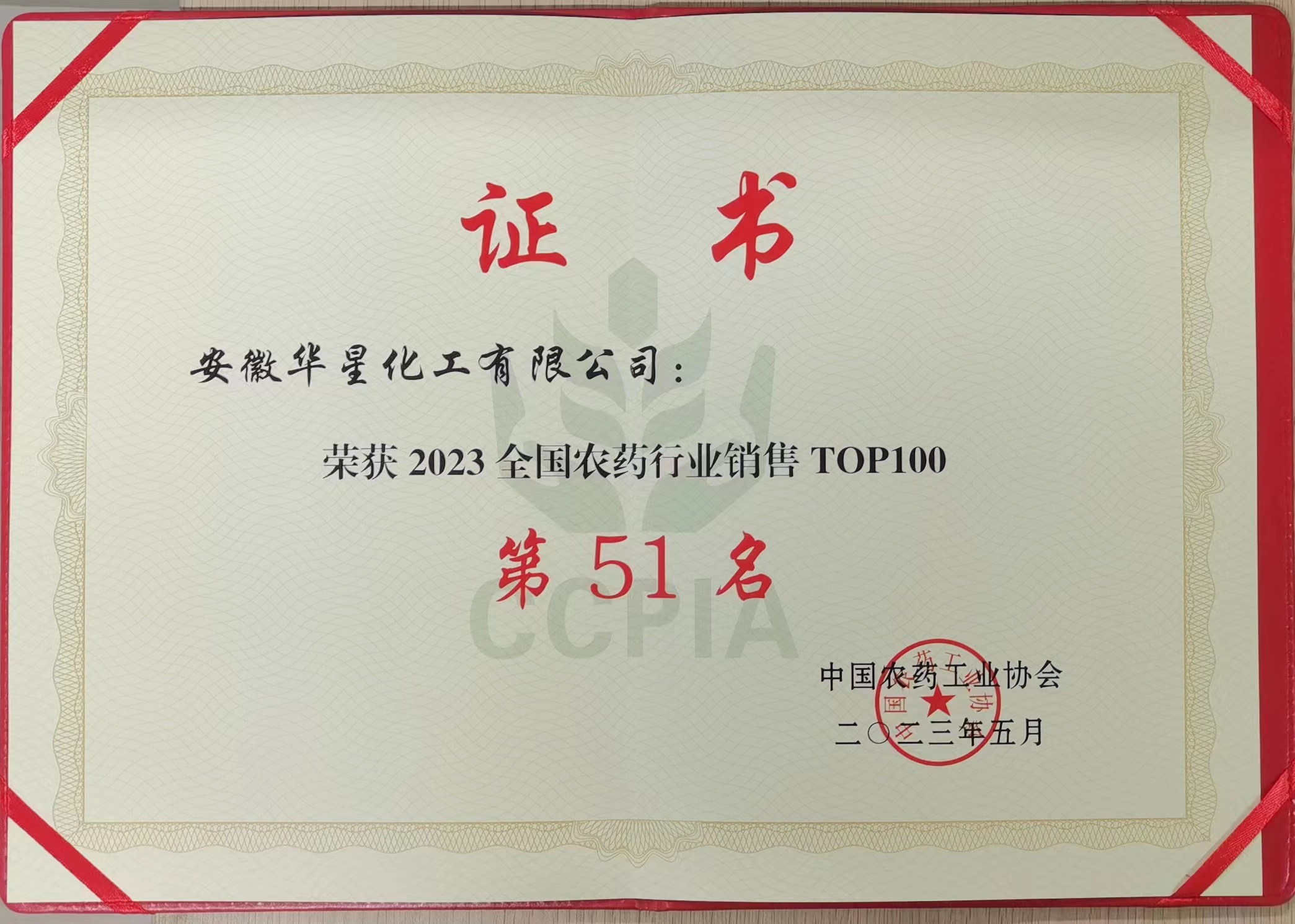 荣获2023全国农药行业销售TOP100第51名