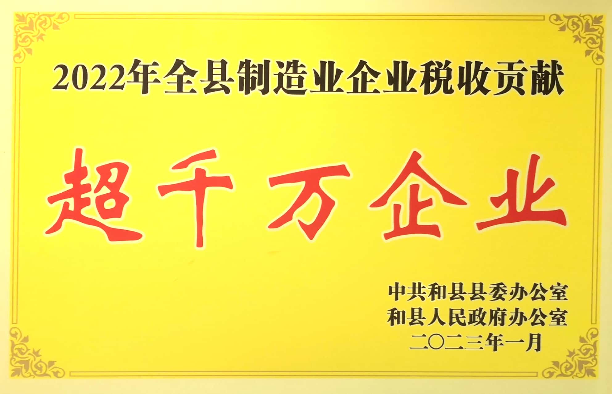2022年全县制造业企业税收贡献超千万企业