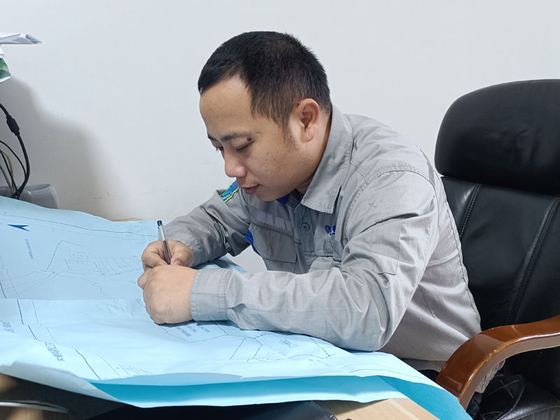 机关党支部党员、设备工程部三级干部许真正在认真核对工程施工图纸。施工图纸是工程建设的基础,是编制工程施工计划、材料采购计划、劳动力组织计划等的依据,图纸审核是工程项目的作业指导书,细致的核对能有效避免工程偏差,是优质工程建设的关键性工作。