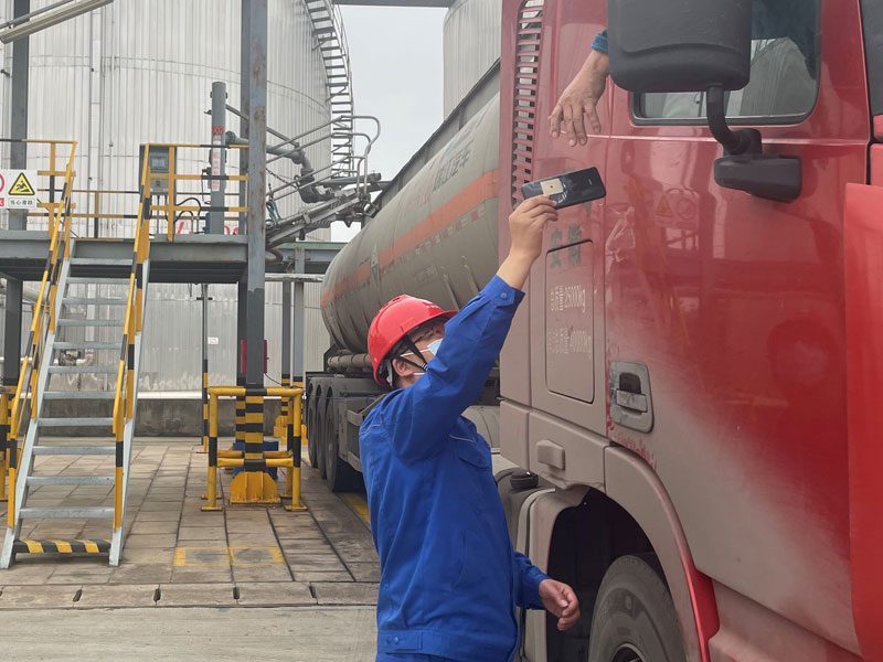 氯碱分公司党支部党员、综合科科长尤墩亚,在烧碱罐区例行检查物流车辆防疫政策落实情况,严格执行公司关于物流车辆防疫各项政策,检查来司物流车辆驾驶员两码和核酸报告,筑牢公司疫情防控防火墙。
