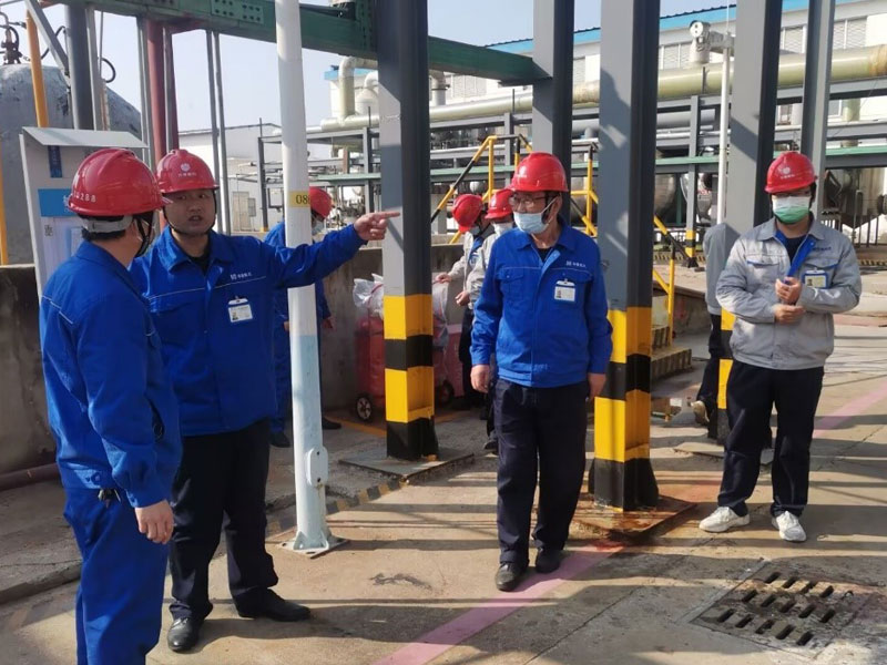 原药分公司党支部书记、总经理助理徐飞正在实地巡查原药生产车间检修情况,要求检修工作务必以安全为首要任务,严格特殊作业操作流程,杜绝“三违”作业,确保检修工作“修得好、开得稳、长周期”总体目标顺利实现。