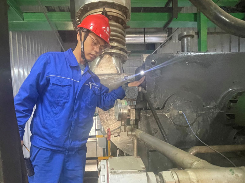 氯碱分公司党支部入党积极分子、精制盐车间副主任王国庆对车间重点设备离心机进行日常巡查,确保设备运行温度、压力、油位等关键指标都处于正常范围内。今年以来,精制盐车间设备运行稳定,生产工艺持续优化,日均处理精制盐27吨。