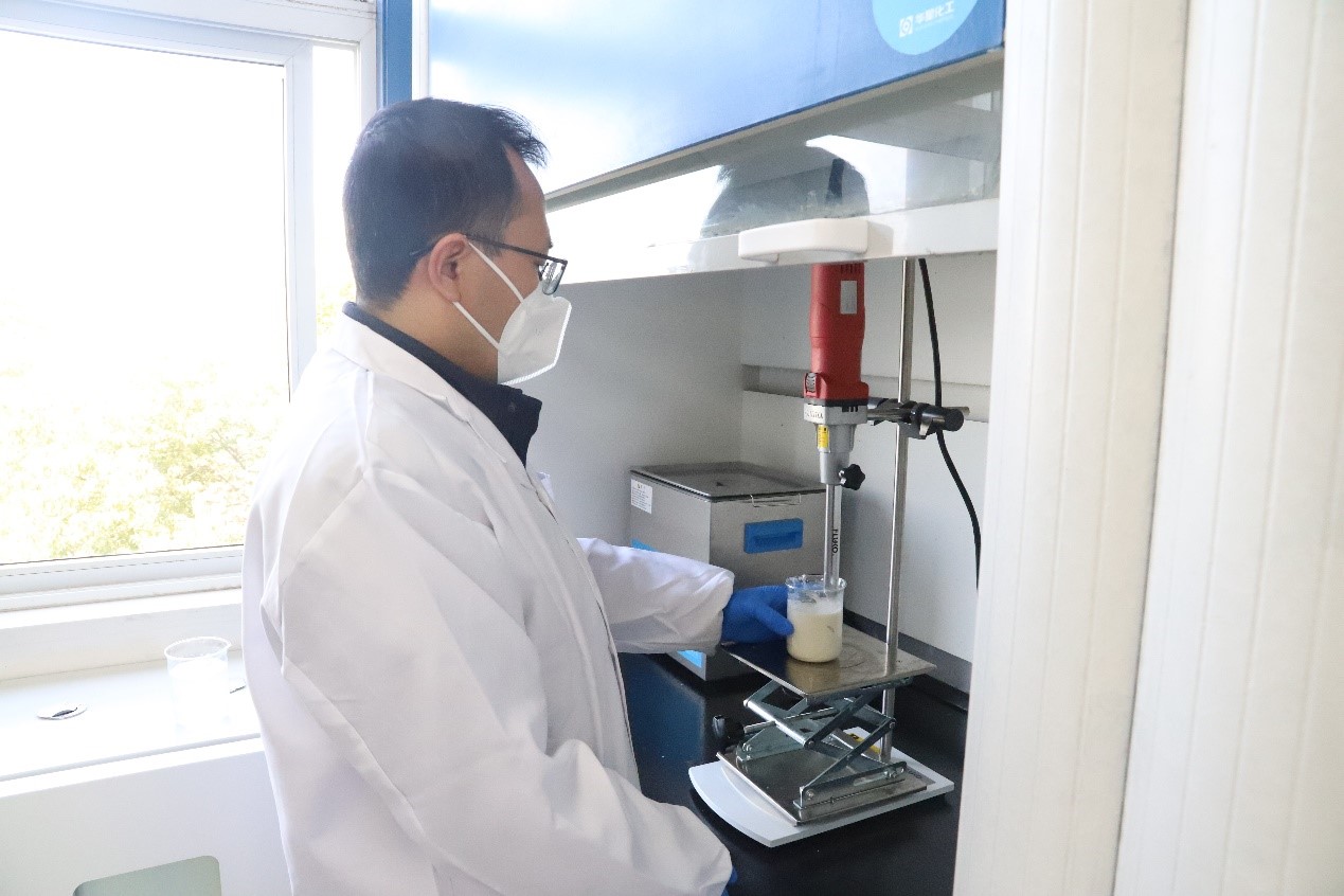 时间紧、任务重,然而第一关就给公司科研工作者们来了个下马威,某悬浮剂(超分散型)的配置,常规产品粘度大于500mPa.s,给生产加工带来极大不便,更新配方迫在眉睫。董强带领的科研小组需要在数百种药剂中筛选出性能最好的助剂组合,即使每天不间断连轴进行实验,每天有效配比的药剂组合也是有限的。每到实验的关键阶段,通宵达旦是常常的事,董强站在试验台前聚精凝神,观察着实验数据的变化。